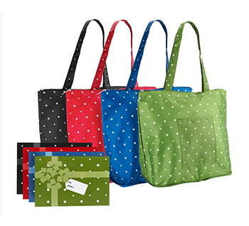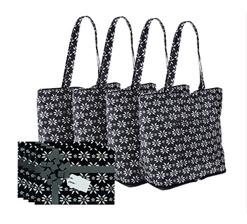 • 4 fully insulated tote bags that fold down and zip up into clutch-size pouches